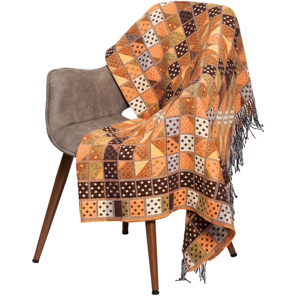 Плед украшен бахромой с двух сторон. В комплекте кожаная бирка для нанесения логотипа.Условия перевозки: при тиражном заказе рекомендуется обрешетка.