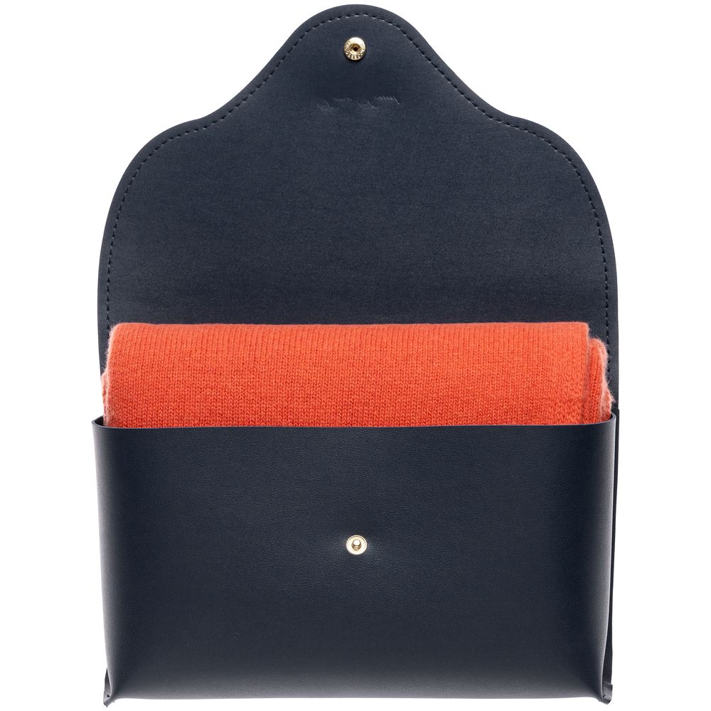 Благодаря кнопке плед можно аккуратно застегнуть посередине, полностью укутавшись в его теплые объятия. Элегантная упаковка-клатч добавляет пледу особого шарма — получается изысканный элитный деловой подарок.