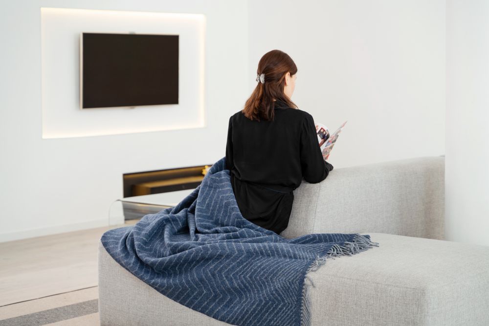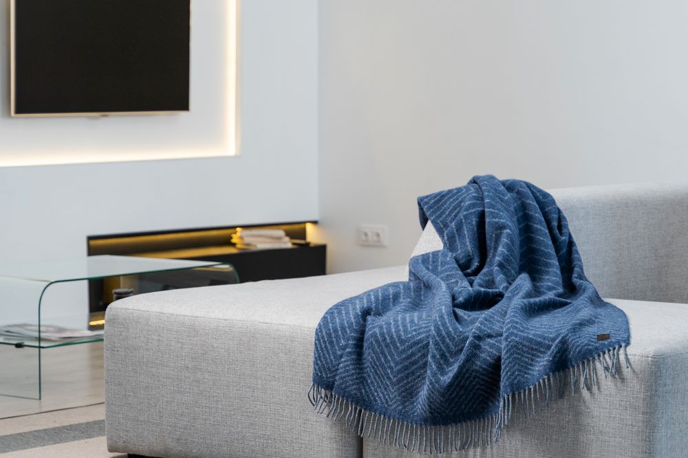 Тканый жаккардовый плед из шерсти альпака (55%) и мериноса (45%). Он легкий и невероятно теплый благодаря тому, что тонкие волокна шерсти задерживают больше воздуха внутри пледа.