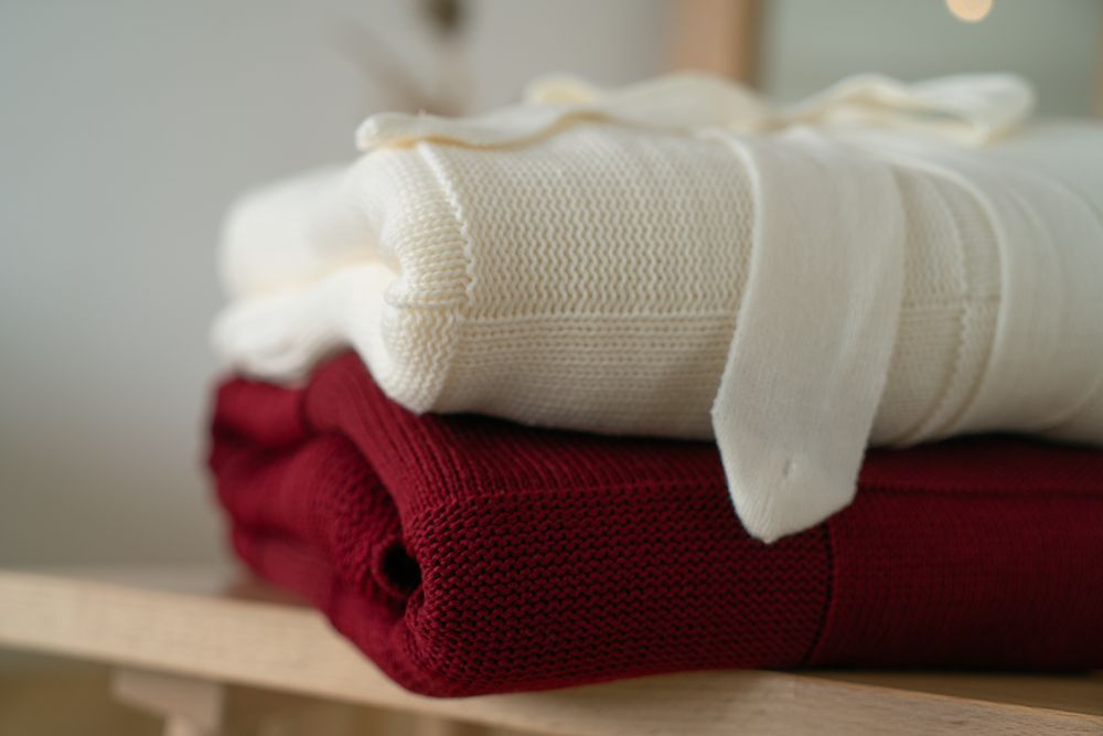 Однотонный плед рельефной вязки «в клеточку» с широким кантом, выполненным резинкой.