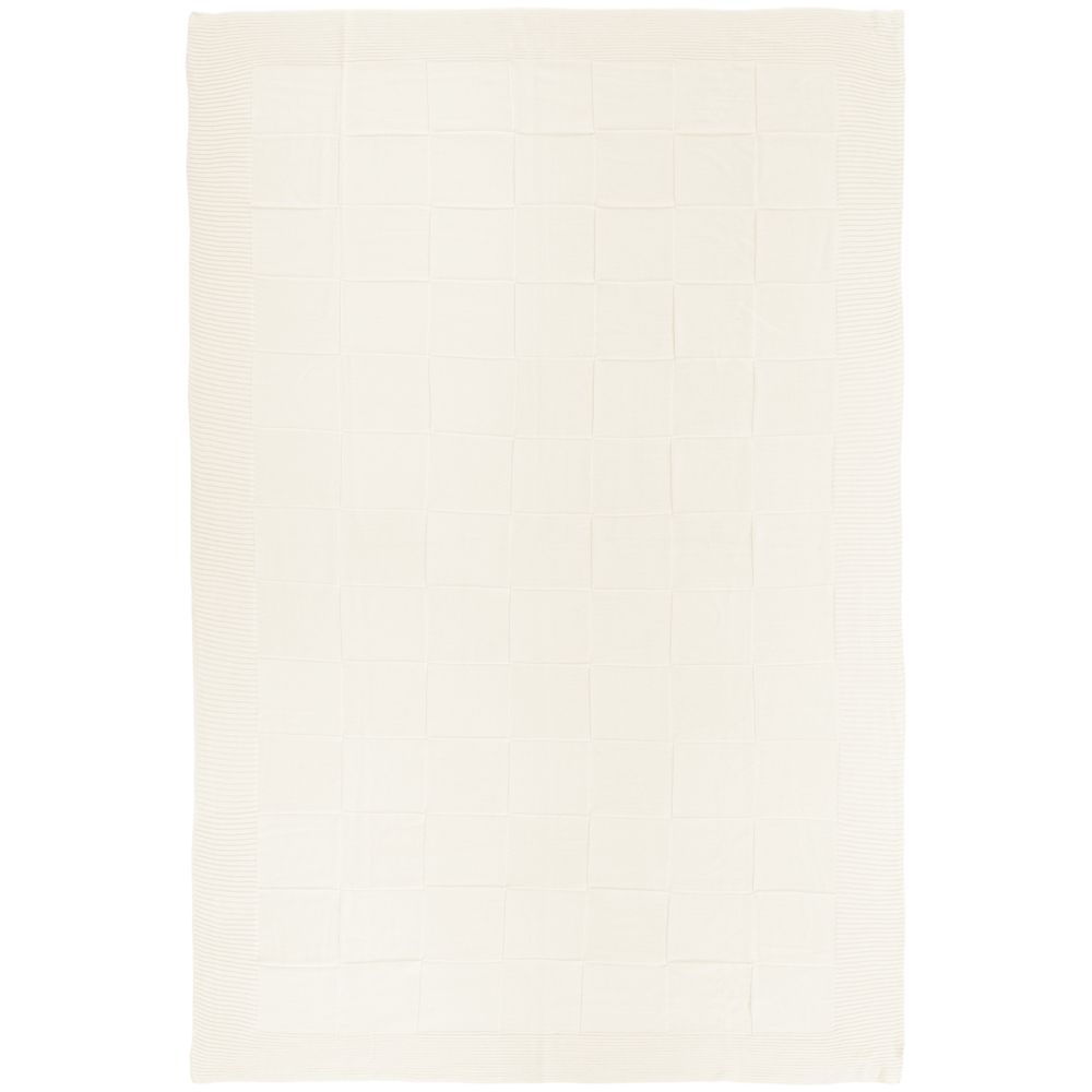 Однотонный плед рельефной вязки «в клеточку» с широким кантом, выполненным резинкой.