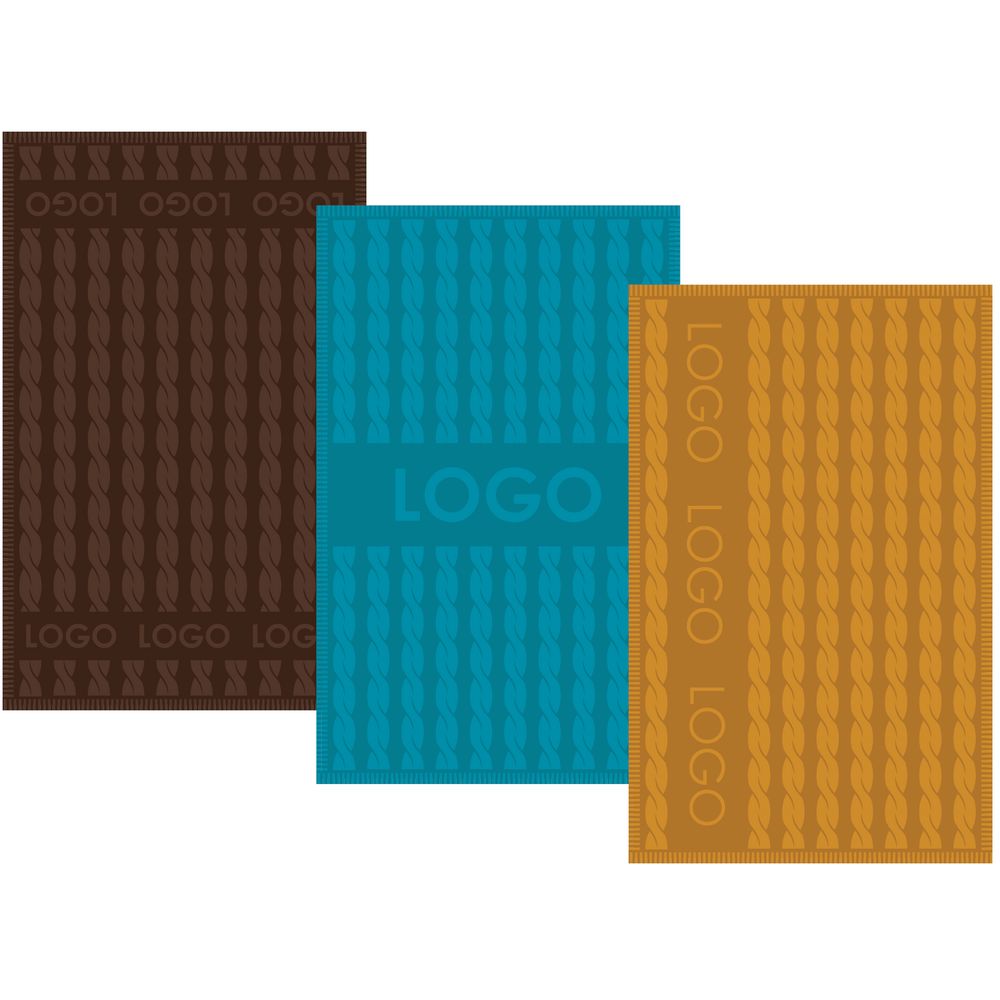 Плед с вывязанным логотипом и рельефным узором в фирменном цвете вашей компании.