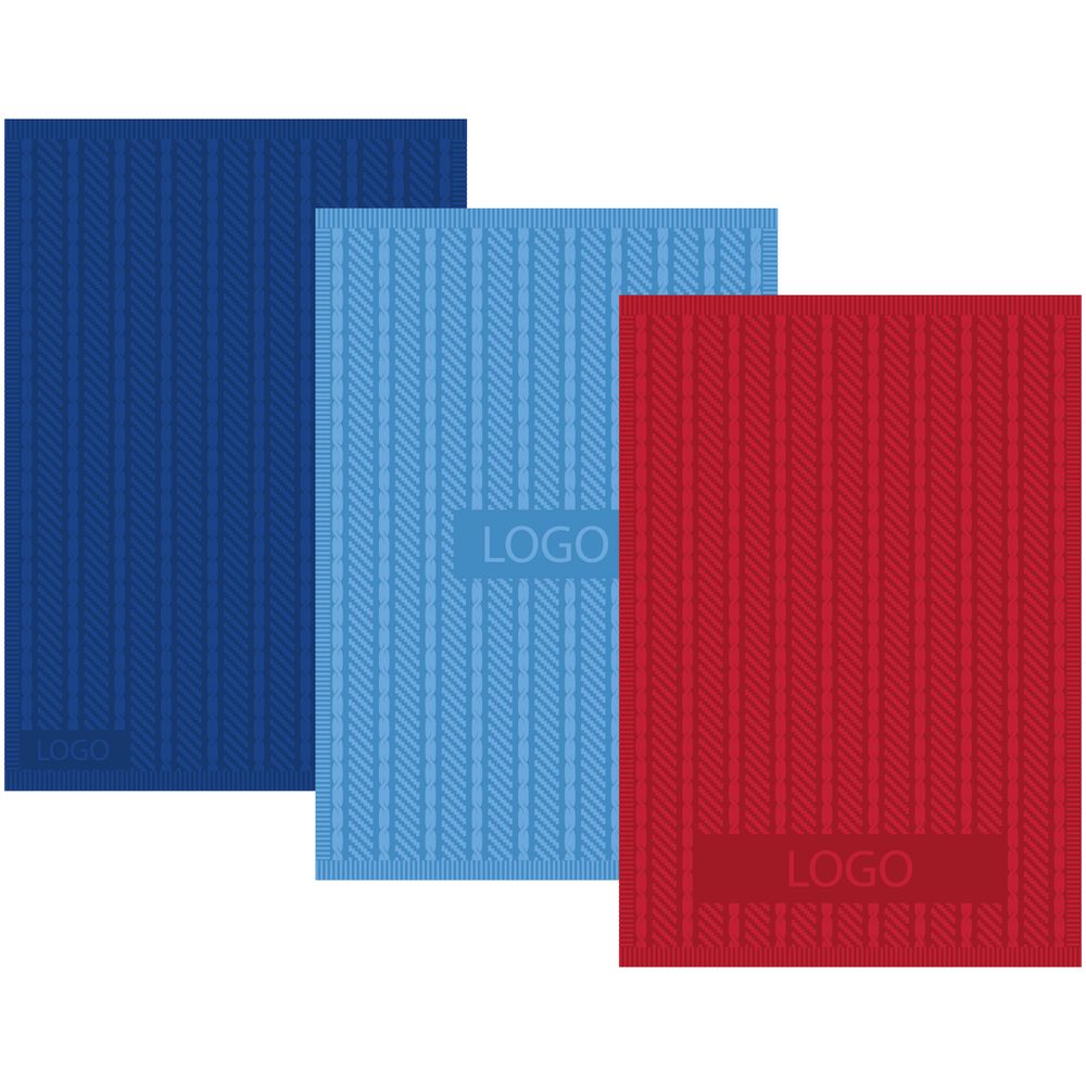 Плед с вывязанным логотипом и рельефным узором в фирменном цвете вашей компании.