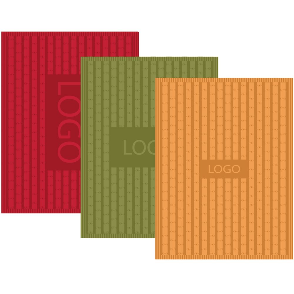 Плед с вывязанным логотипом и рельефным узором в фирменном цвете вашей компании.