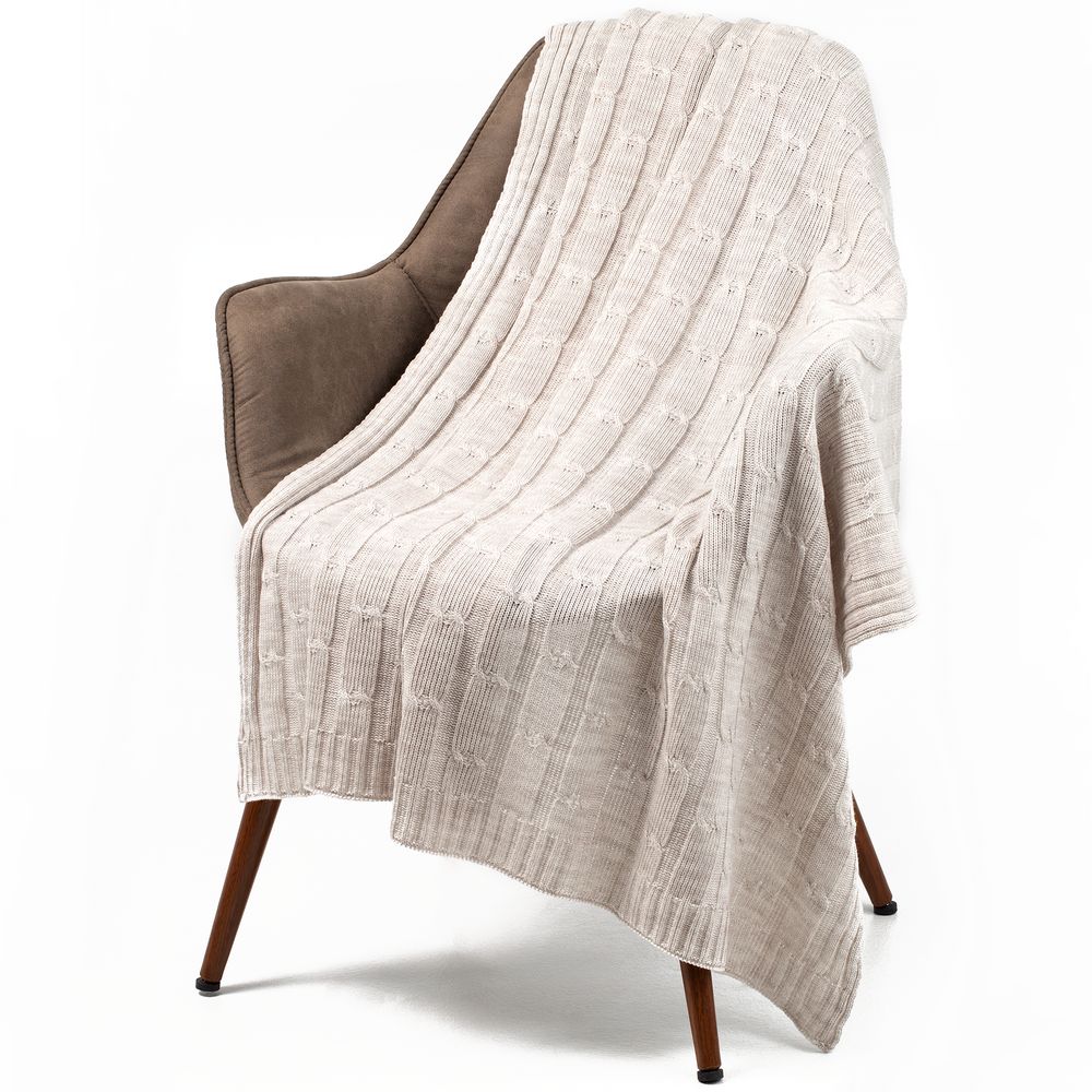 Вязаный плед фактурной вязки из меланжевой пряжи.