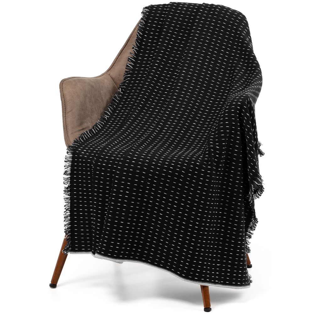 Плед из мягкого акрила Fringy особенный и неповторимый. Он выигрышно выделяется необычным узором — контрастными с основным полотном стежками, дополненными элегантной и аккуратной бахромой. Словно соединив в себе искусство вязания с шитьем, плед гармонично впишется в дизайн современной гостиной или спальни.