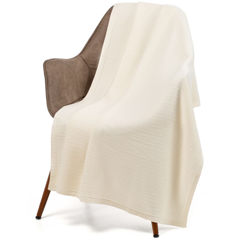 Плед из полушерстяной пряжи, поэтому прекрасно согревает и неприхотлив в уходе.