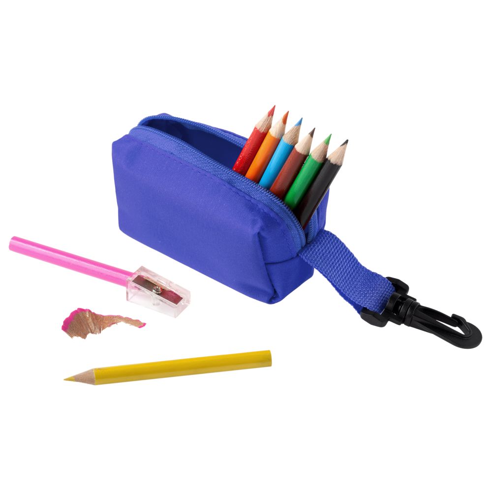 8 цветных карандашей и точилка в пенале с карабином, который можно пристегнуть к рюкзаку или сумке.