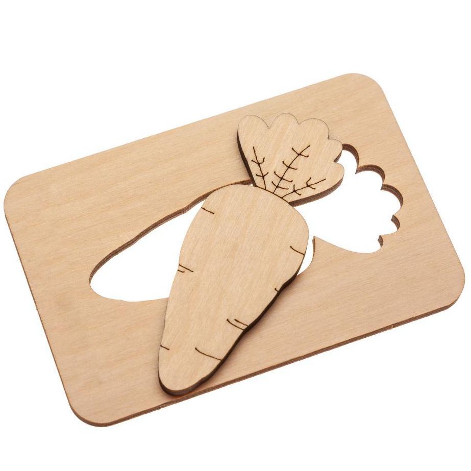 В наборе 5 рамок с вкладышами: луковица, морковь, капуста, кукуруза, томат.