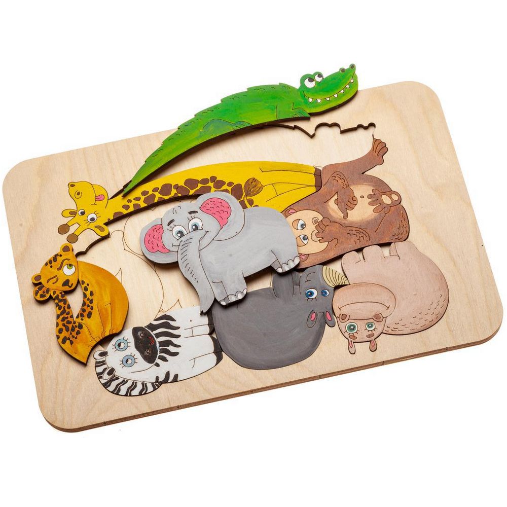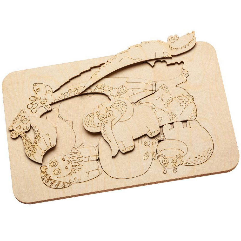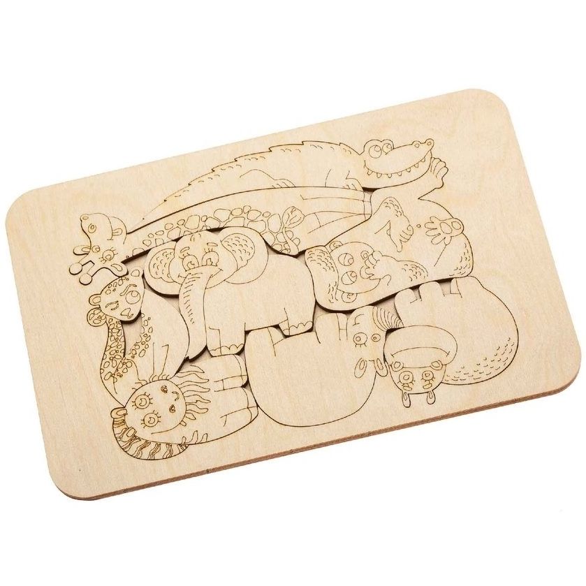 Деревянный пазл для развития мелкой моторики, логики и творчества. Все детали можно раскрасить: в комплекте идет набор красок и кисточка.