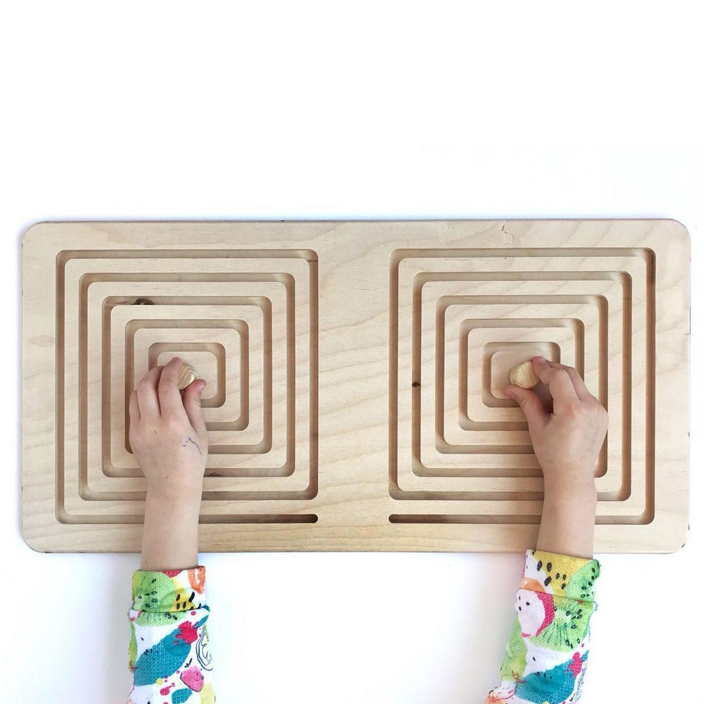 Межполушарная или зеркальная доска представляет собой специальное поле со спиралью, по которому нужно проводить бегунки обеими руками из одного конца в другой.