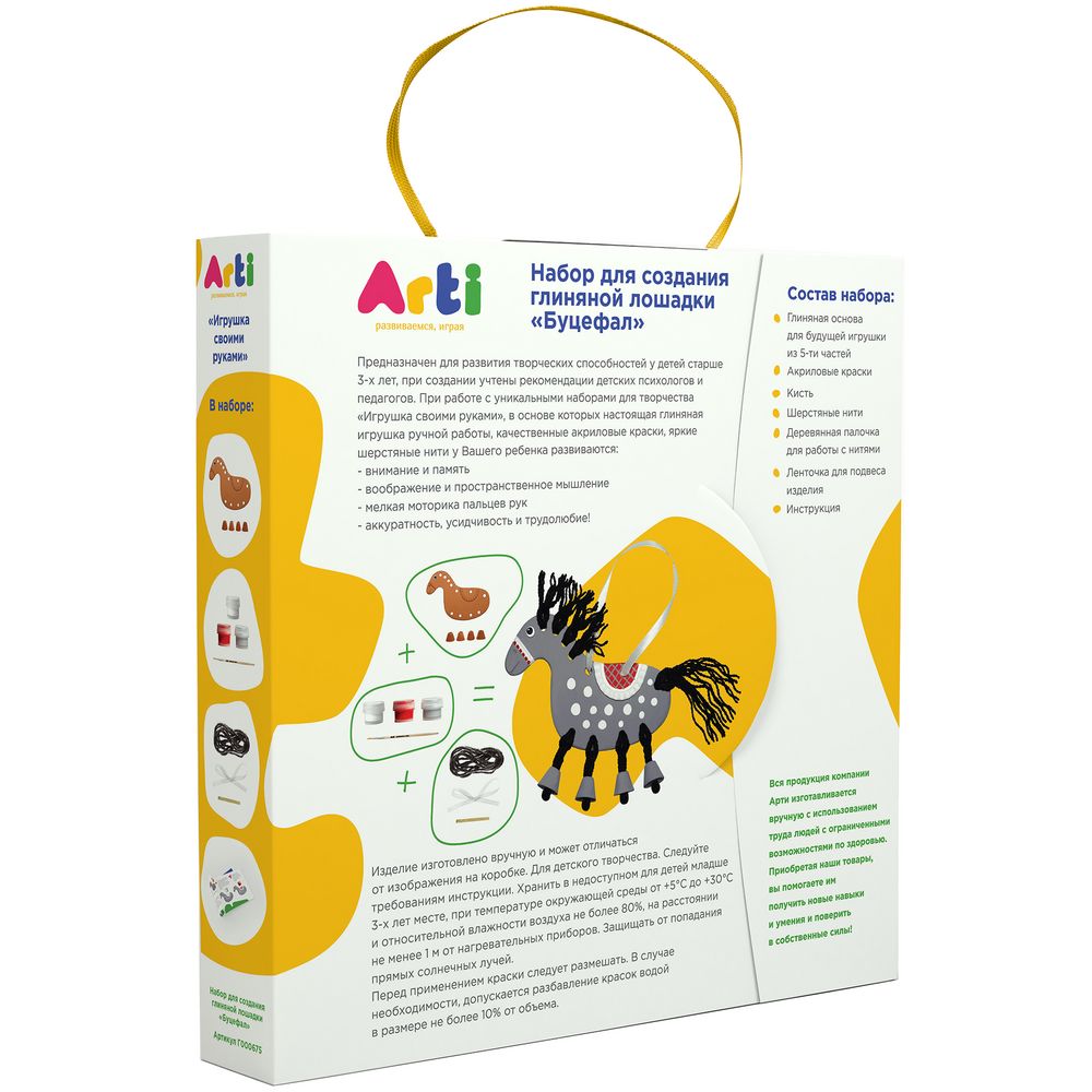 Используя глиняную основу, акриловые краски и яркие шерстяные нити, ребенок создаст неповторимую игрушку, а благодаря подробной инструкции работа превратится в удовольствие.