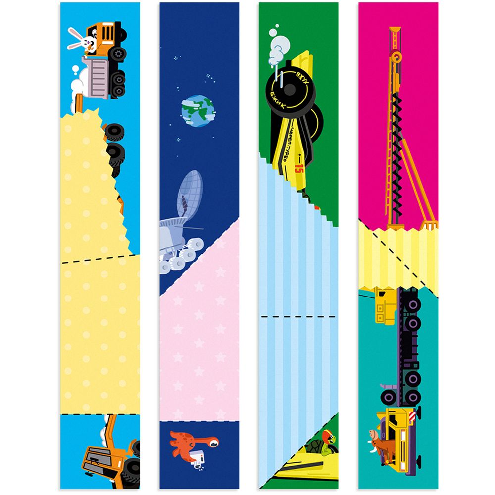 Дорожные «Сгибалки» — уникальный формат тренажера для моторики и пространственного мышления. У ребенка формируется понимание отношений между предметами путем наложения, совмещения, перегруппировки «кусочков» головоломки. Соединяя картинки из разных сгибалок, можно учиться строить сюжеты и придумывать удивительные истории.