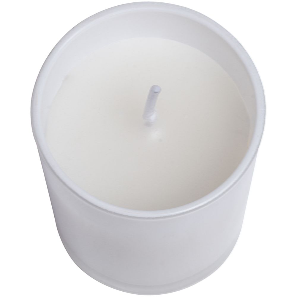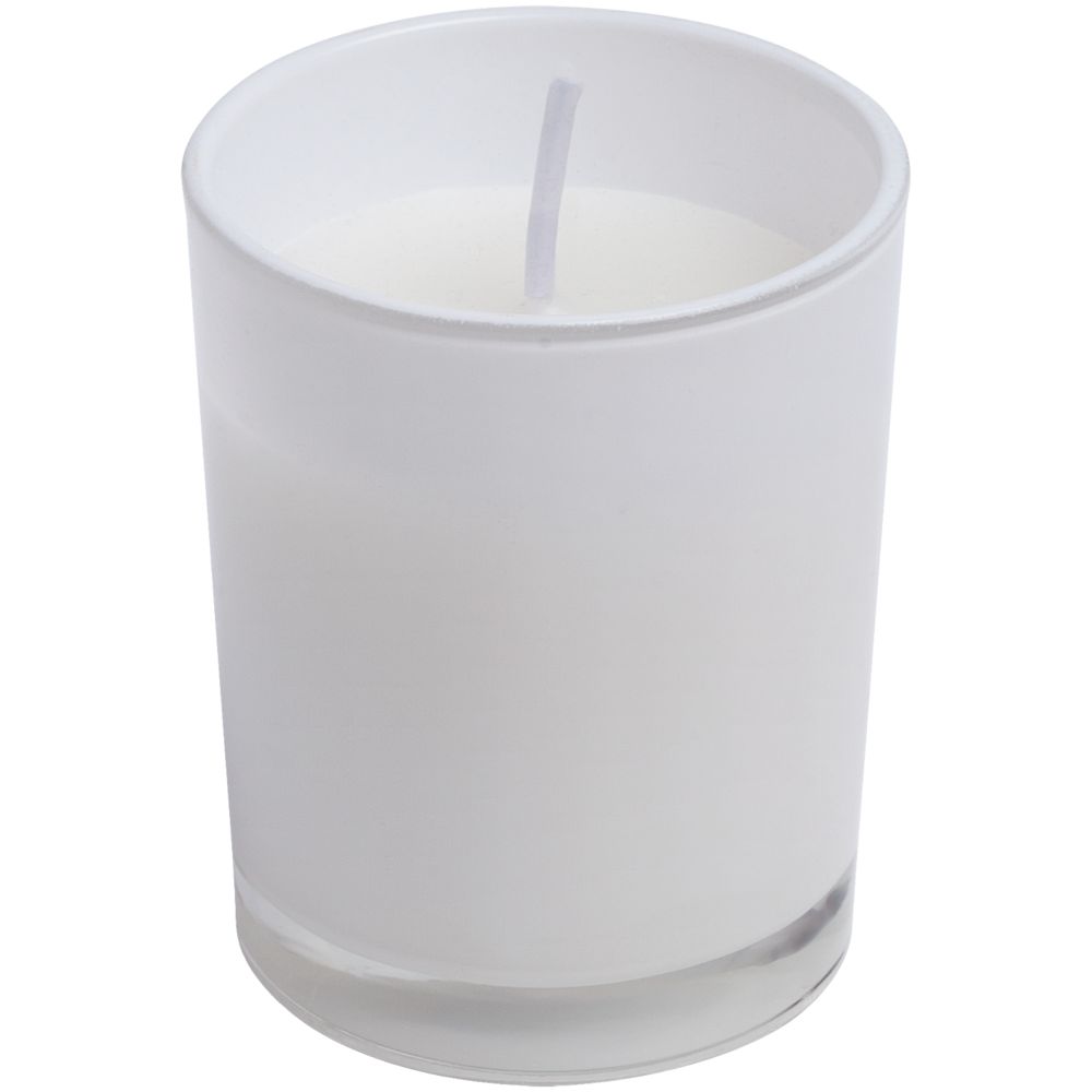 Свеча с легким парфюмерным ароматом в стеклянном подсвечнике.