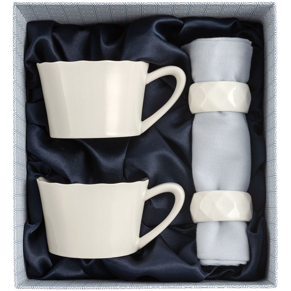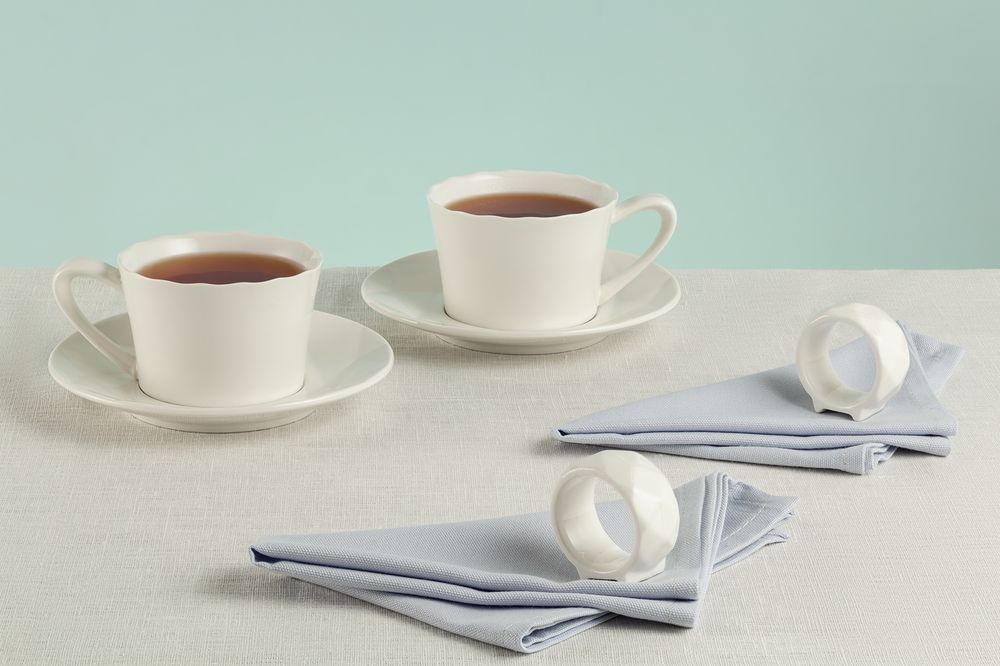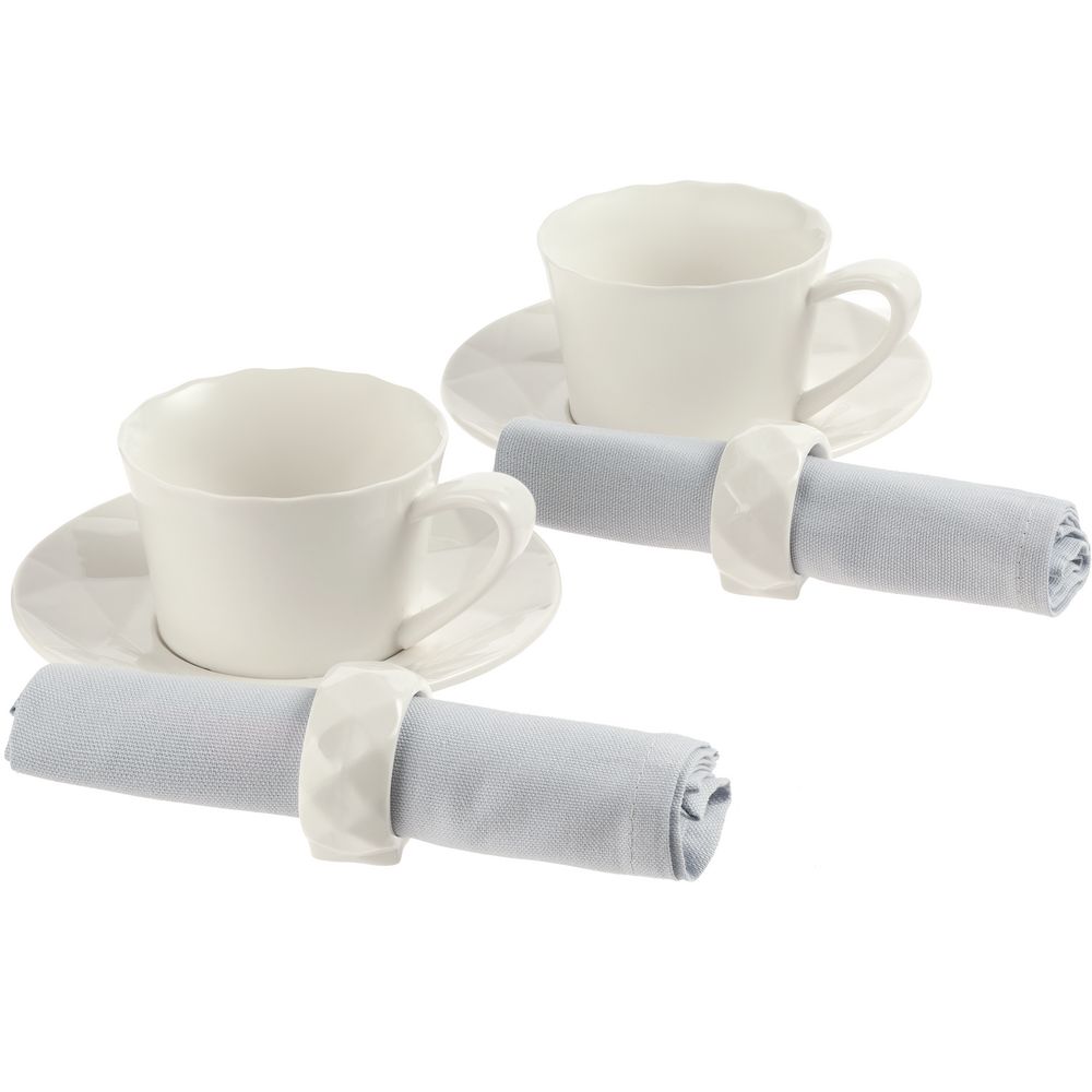 Diamante Bianco — настоящий бриллиант коллекции Altavolo. Структура и пропорции граней блюдец и колец для салфеток в точности повторяют верхнюю часть бриллианта классической огранки — корону. Присмотритесь — и вы увидите, как играет свет на молочно-белом фарфоре.В набор входят две чайные пары (220 мл), две салфетки и два кольца для салфеток.
