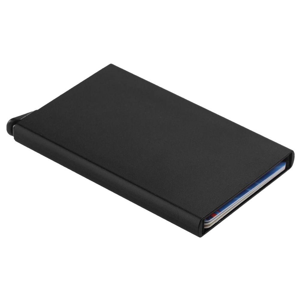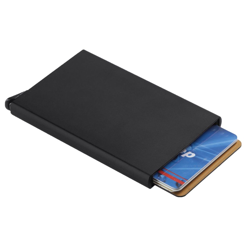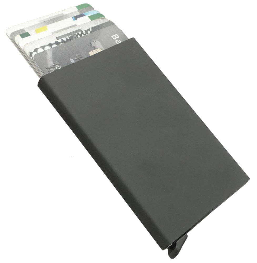 Футляр с выдвижным механизмом имеет защиту RFID. Вмещает 6 карточек.