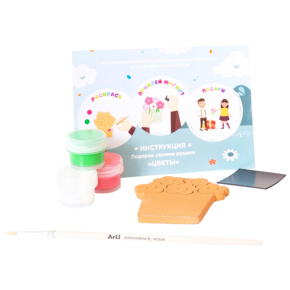 Роспись глиняных фигурок — полезное занятие для развития цветовосприятия, моторики, координации, воображения и творческих способностей. С наборами для творчества Arti ребенок учится рисовать, сочетать цвета и получать новые оттенки, ровно обводить контуры и наносить слои краски.