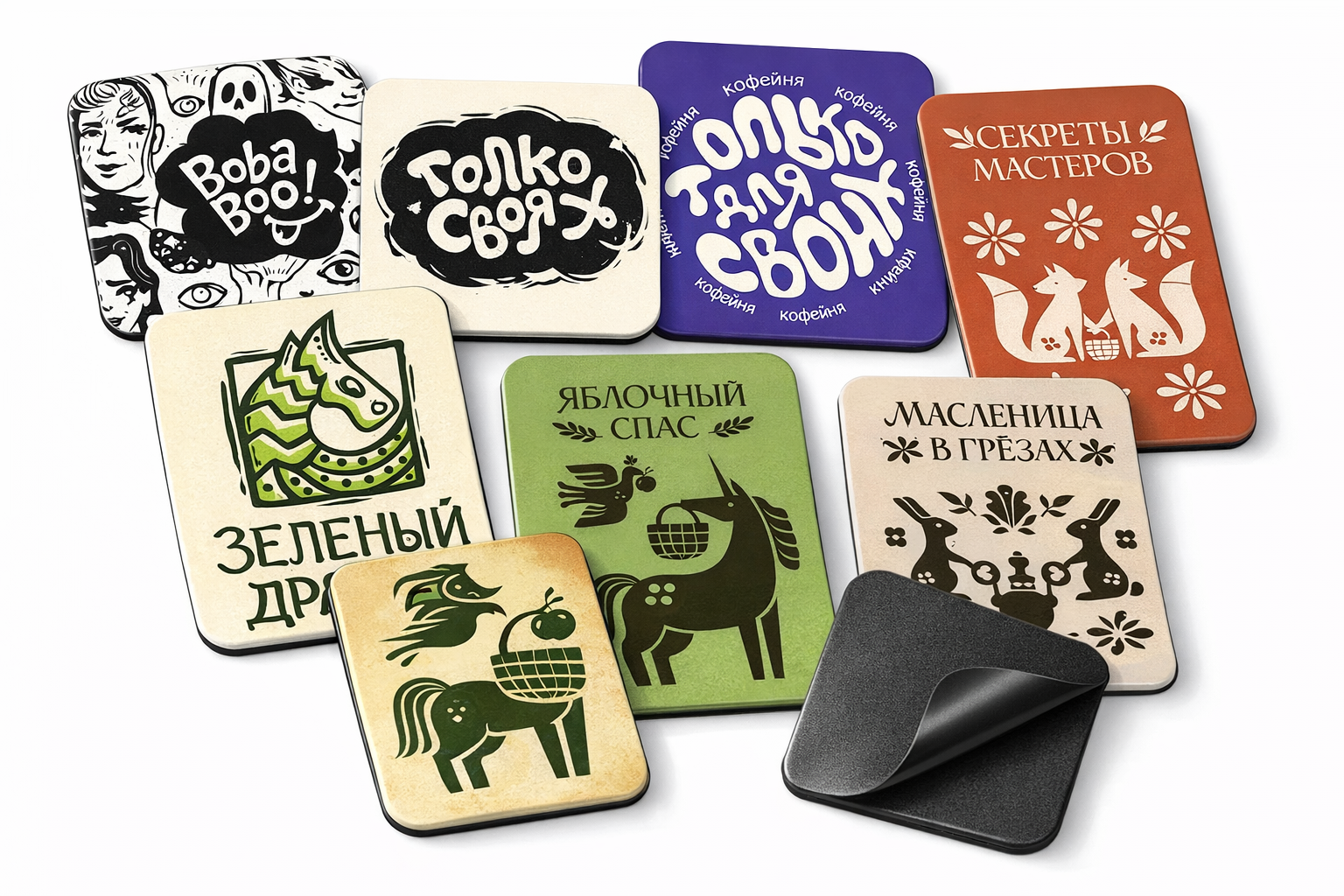 Мы делаем кастомные виниловые магниты с вашим дизайном: иллюстрации, логотипы, шрифтовые решения, паттерны, айдентика. От минимализма до сложной графики.