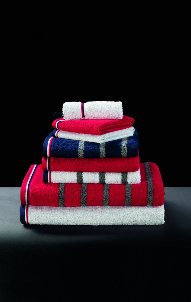 Полотенца линейки Athleisure выполнены в глубоких насыщенных цветах. Сочетание красного, белого, синего и приглушенного серого в разных комбинациях напомнит о классической ретро или морской тематике.