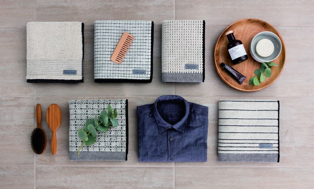 Полотенца Eden из хлопка со льном с необычным бордюром и контрастным кантом.