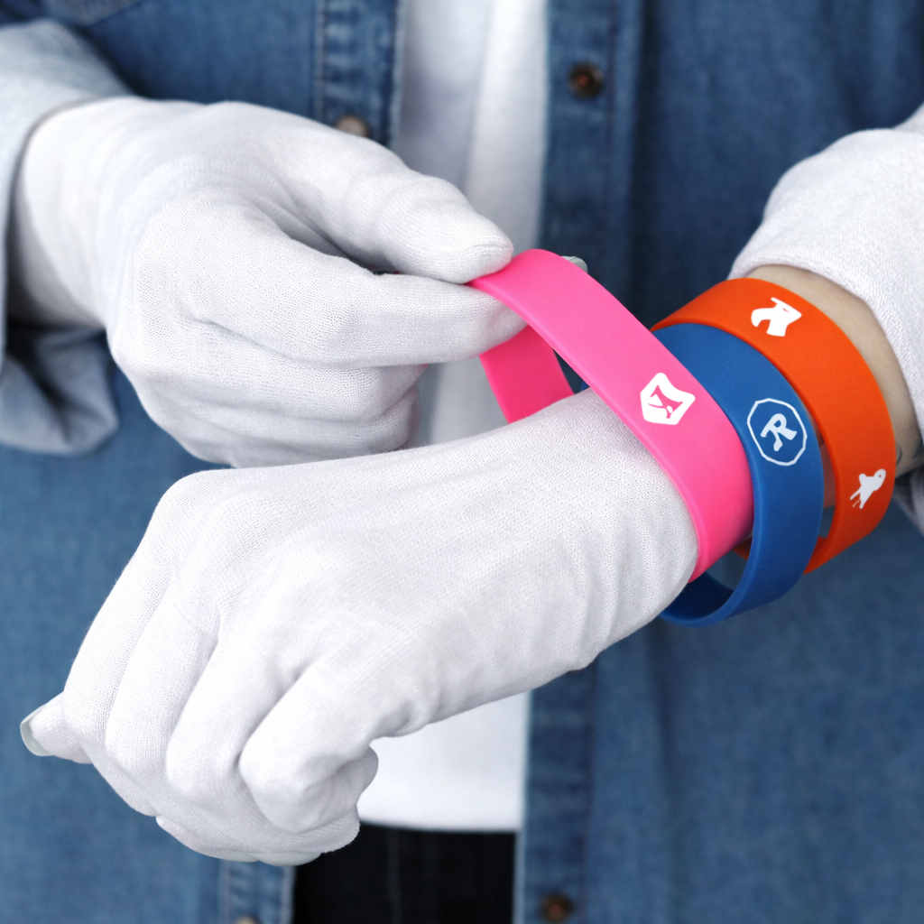 Слэп-браслеты — это интерактивный формат силиконового мерча: лёгкий хлопок по запястью, и браслет фиксируется сам. Их хочется надеть, показать, оставить. Именно поэтому они отлично работают на мероприятиях, промо-акциях и в корпоративных наборах.