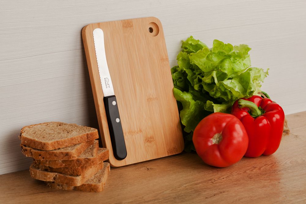 Разделочная доска и нож Fruhstuck — идеальный дуэт для правильного начала дня. Зубчатое лезвие ножа позволит без усилий разрезать свежую булочку, а при помощи закругленного кончика не составит труда равномерно намазать масло или джем.