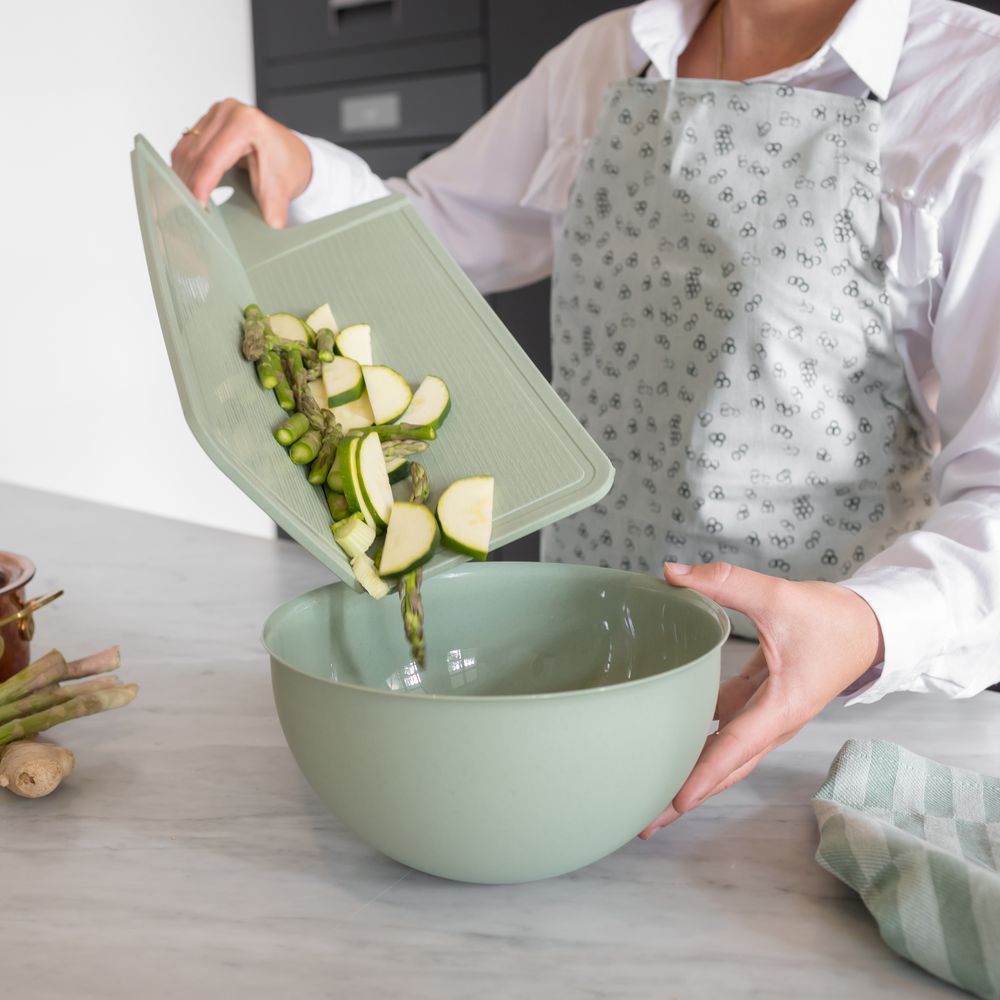 Согнув разделочную доску Snap 2.0 Organic вдоль, вы можете легко и просто переложить все нашинкованные овощи, фрукты или мясо в сковороду или кастрюлю — ни один кусочек не упадет мимо.