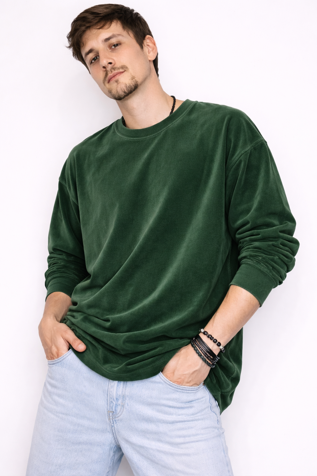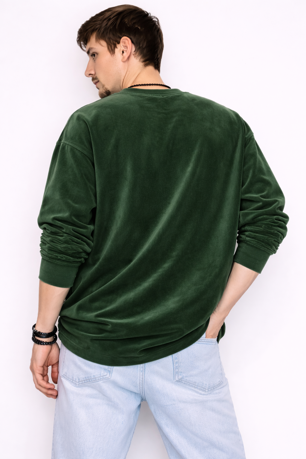 Мягкий эффект велюра добавляет изделию глубину цвета и ощущение премиальности, сохраняя при этом практичность хлопка.