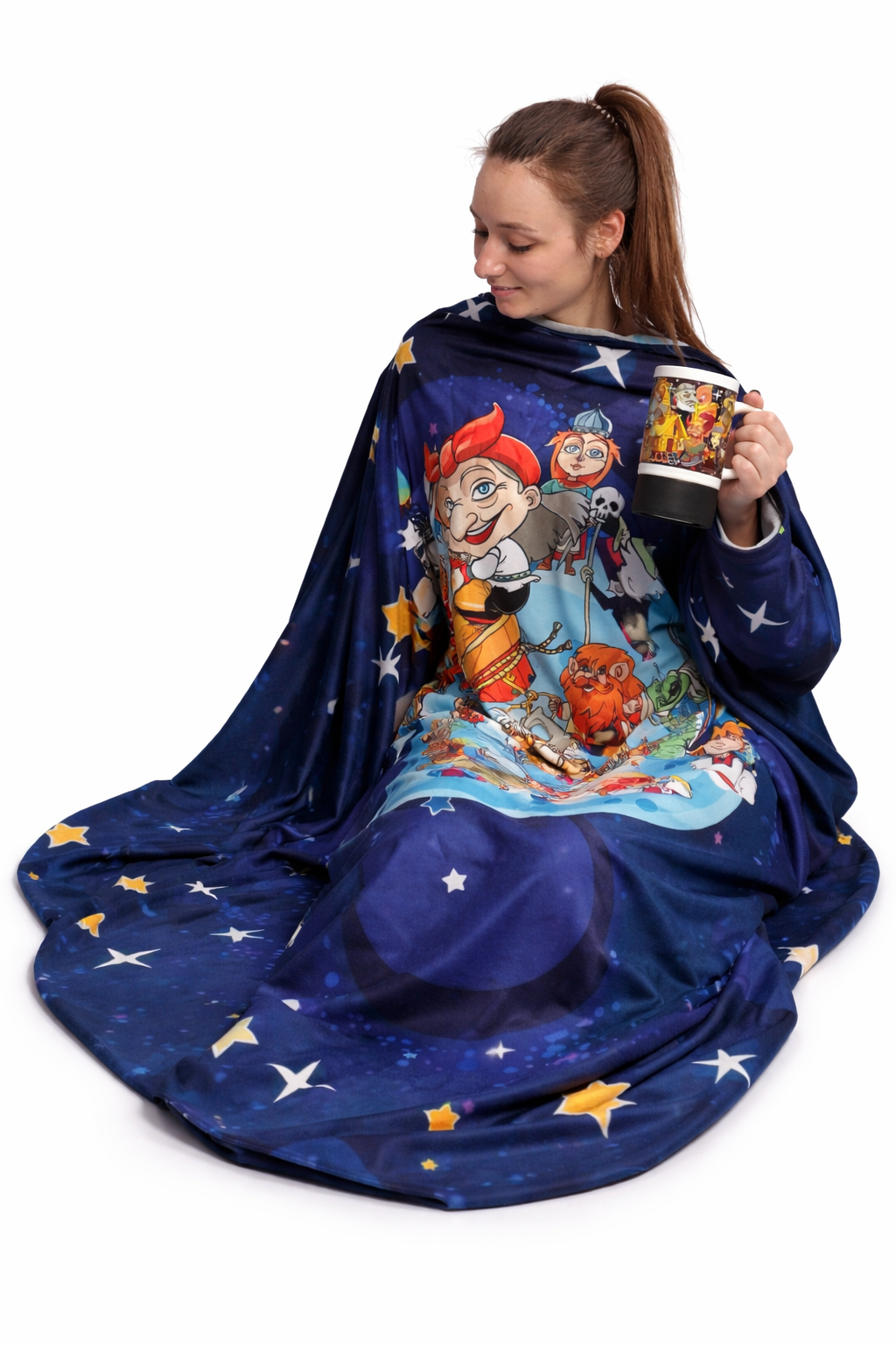 Этот плед — не просто уютный аксессуар, а полноценный носимый формат: рукава делают его удобным в повседневной жизни, а визуал превращает в заметный элемент интерьера или брендинга.